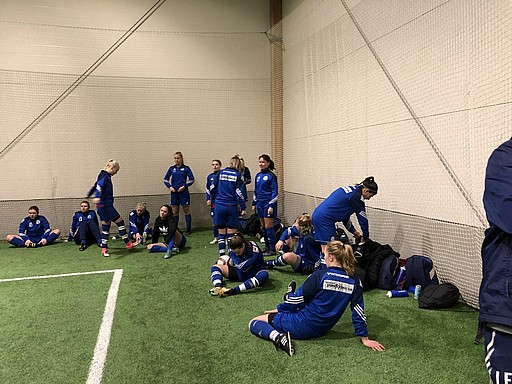 I den sista gruppspelsmatchen möter vi Sandviken som var förra årets vinnare och i år blev tvåa, de spelar i div 1 och det syns att kvalitén är riktigt bra. Vi hänger ändå med bra och vi får se ett otroligt snyggt mål av Lina som drar till från halva och sätter den. Vill man kolla så finns målet filmat på instagram! Tyvärr får Lina även en riktigt ful tackling i slutet av matchen och slår i huvudet ordentligt i marken som gör att hon tyvärr missar resten av cupen. Vi står upp bra mot Sandviken men tyvärr når vi inte hela vägen i denna matchen.